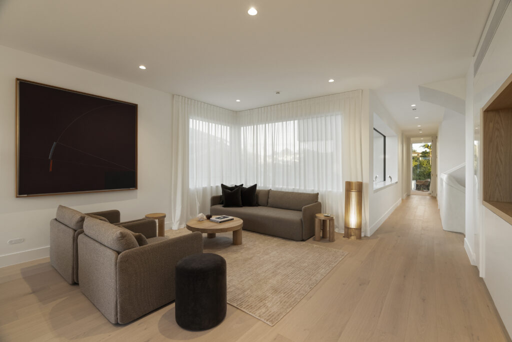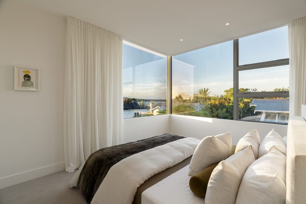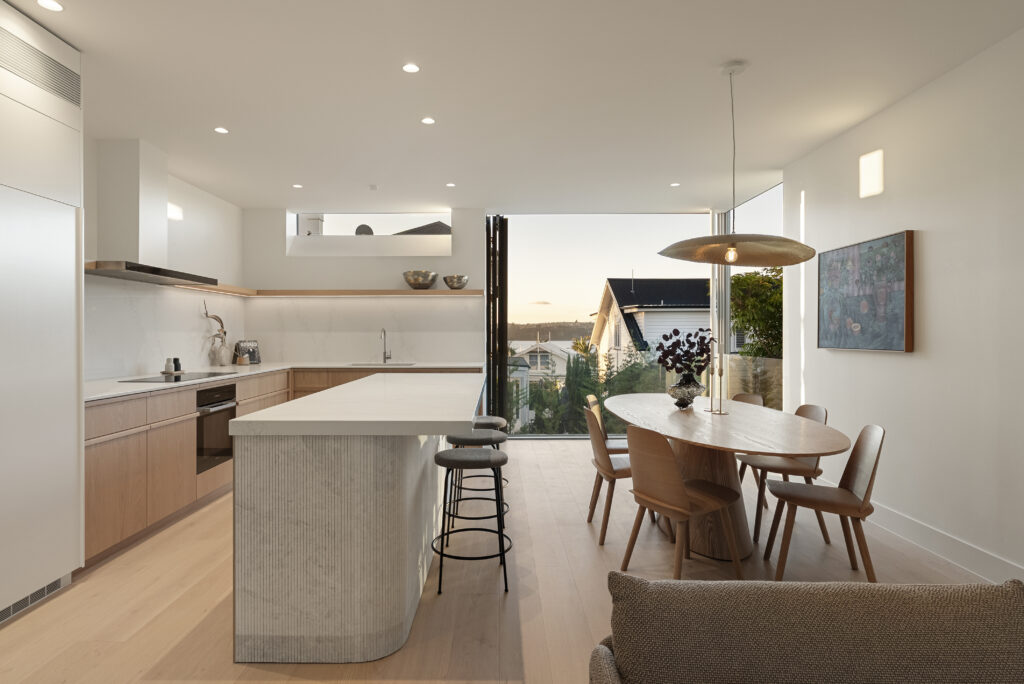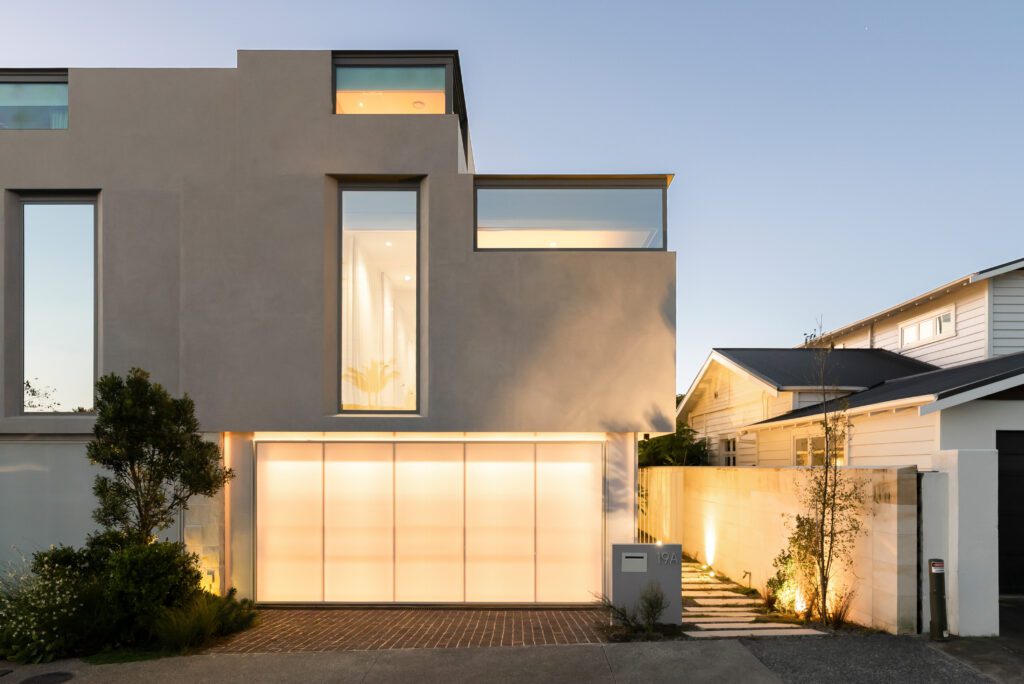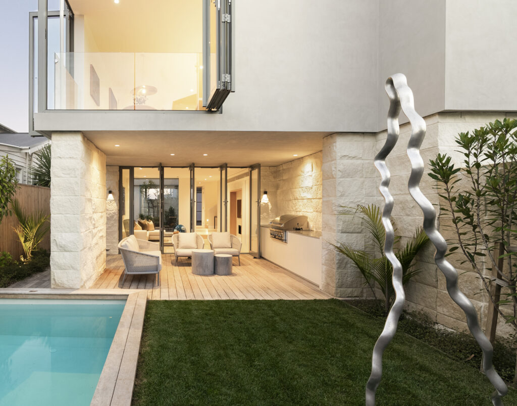One of two brand new homes. Architectural design, clean lines and crisp detailing. 3 bedrooms, office, 2 living spaces, 2 bathrooms and a powder room over 3 levels, connected by a sculptural curved staircase. Water views from the upper floors, including the grand master suite. A north facing private entertaining area with a plunge pool and built-in BBQ. Double garage with internal access and a lift.