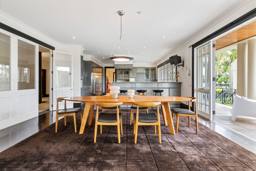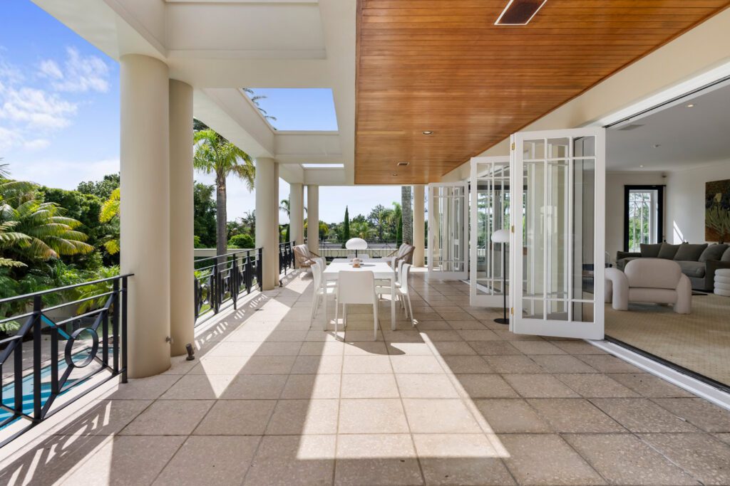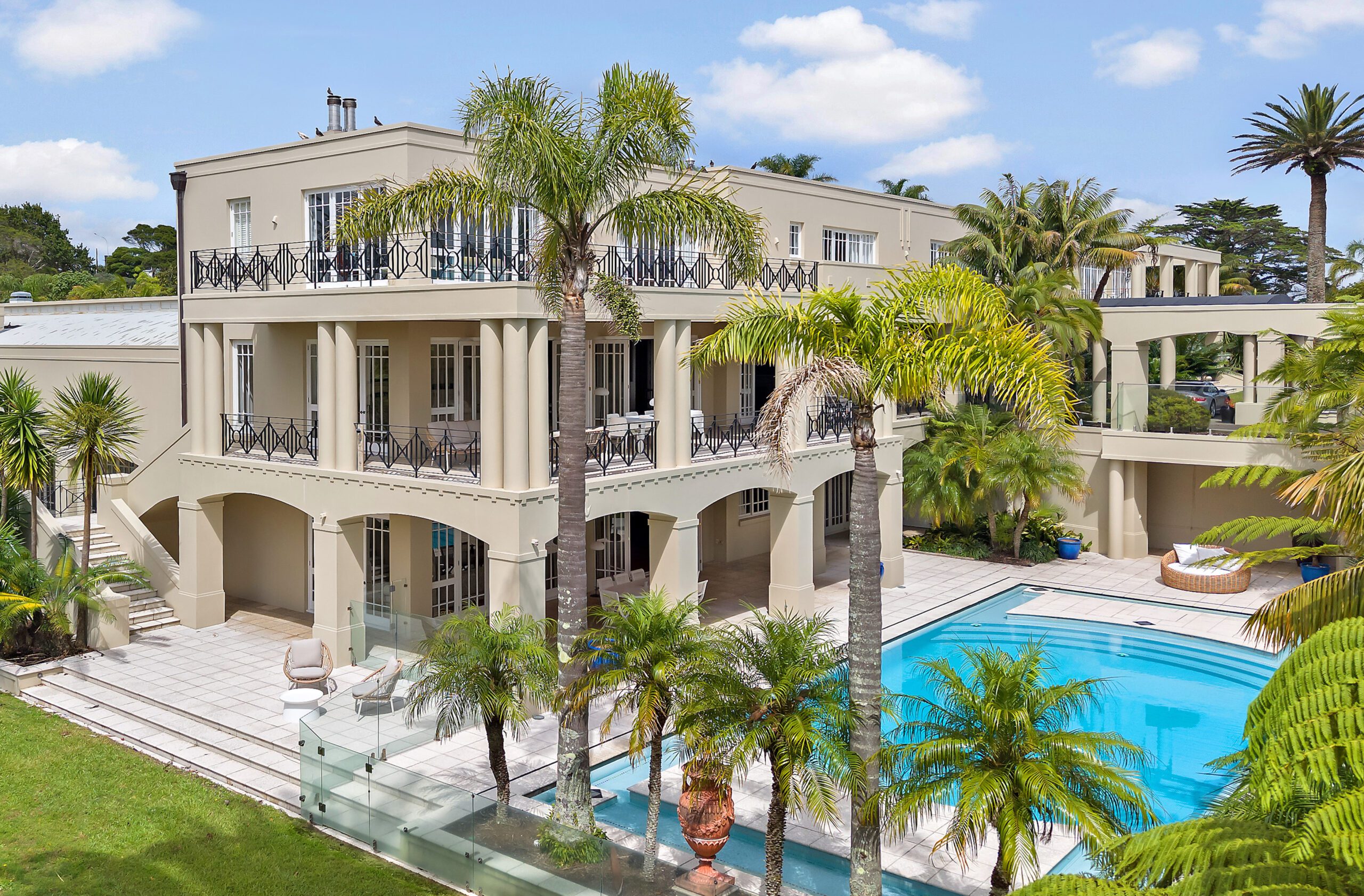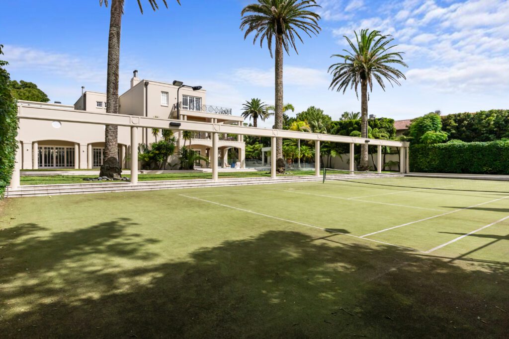 Billiards room, theatre, gym, wine cellar, bar area, indoor and outdoor swimming pools, sauna, tennis court, lift and 12-car garage. 8 bedrooms in the main house, including self-contained guest quarters. Sitting across 2 titles with separate driveways and zoned mixed housing urban, the options are endless.