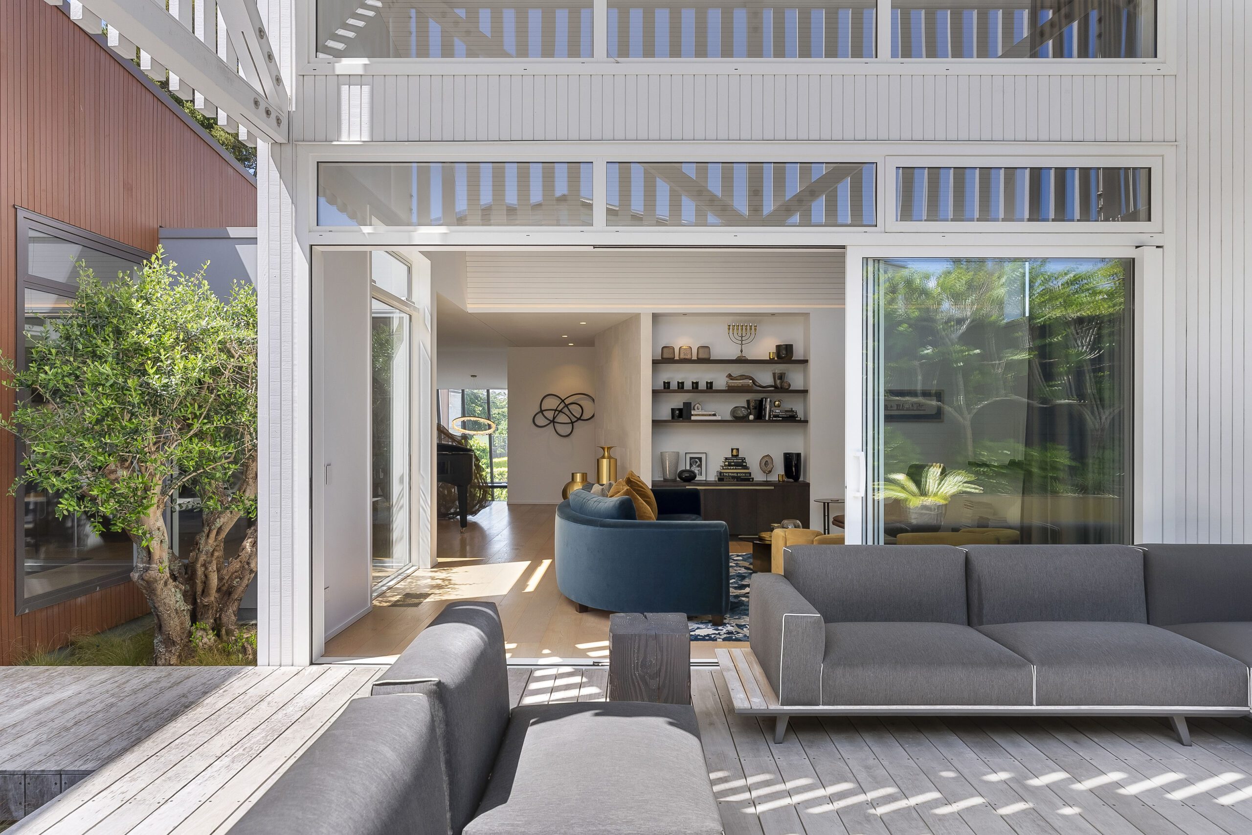 Award-winning Bossley Architects design with 5 bedrooms located in a private enclave. Features multiple living areas, north-west facing landscaped gardens, an outdoor fire, double garage, and 4 secure off-street car parks. An architectural masterpiece.